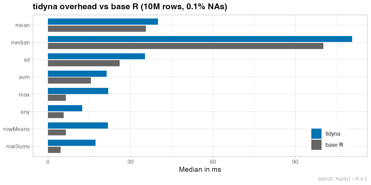 negligible (1.1x). But rowMeans() and